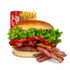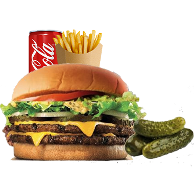2 steaks, Cheddar, Cornichon, Salade, Tomates, Oignons, Sauce maison